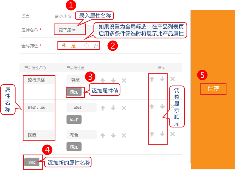 录入属性名称-》添加需要的属性