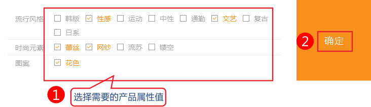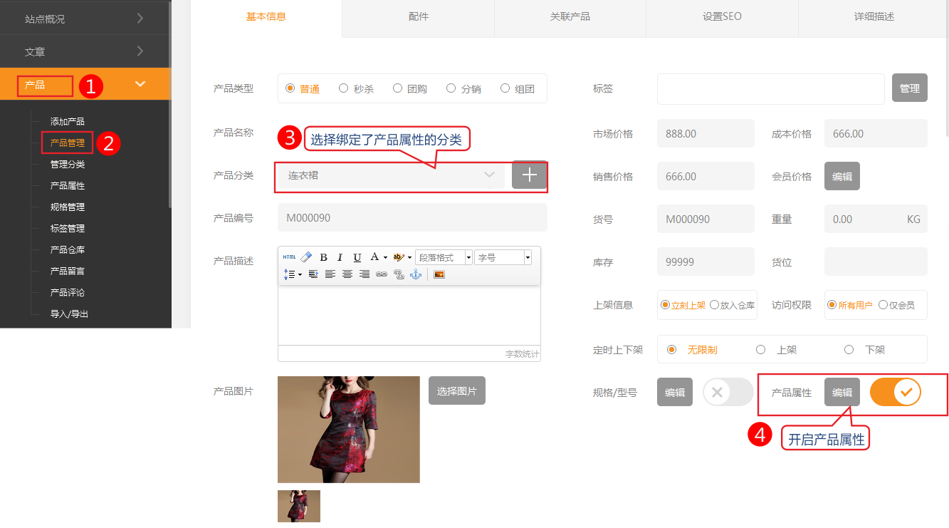开启后选择该产品的产品属性